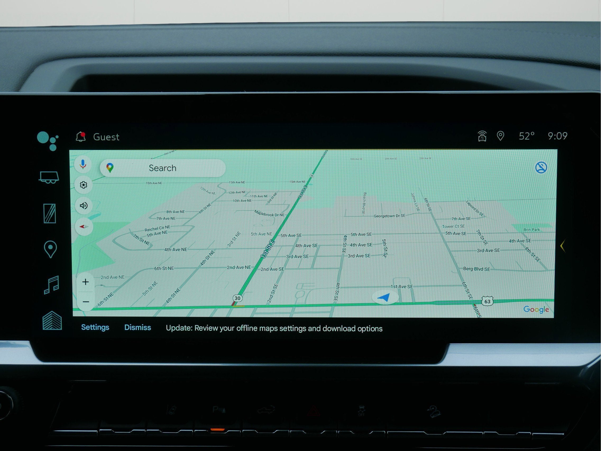 - When in Reverse, displays a centered guideline on the Rear Vision Camera view1