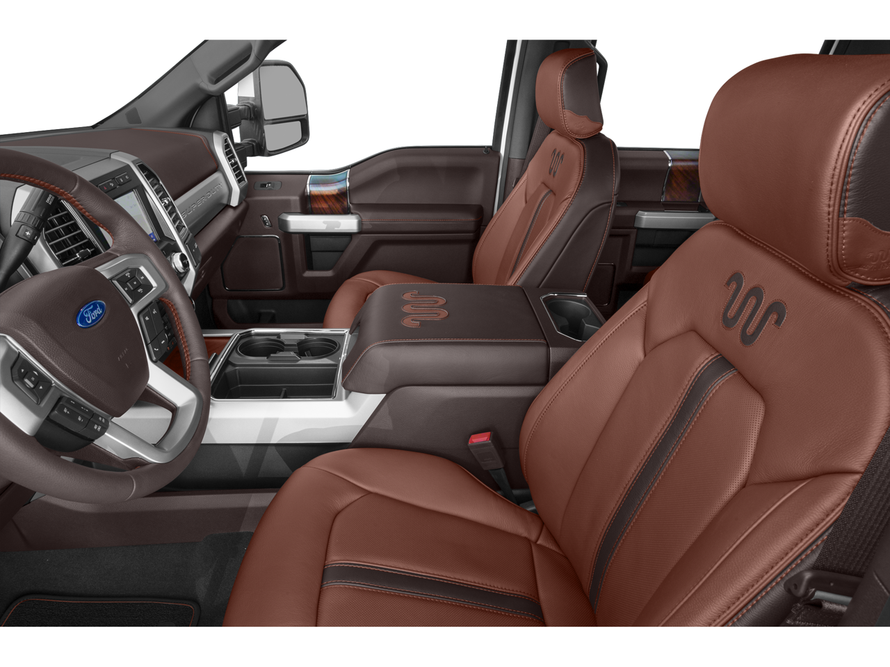 - Unique King Ranch Leather 40/Console/40 Front Seats -inc: Kingsville Antique Affect leather seating surfaces, dual integrated cupholders in armrest, 2 outboard head restraints, 10-way power driver and 8-way power passenger (includes power lumbar), memory, easy-entry/exit driver's seat and heated/ventilated driver and passenger seating