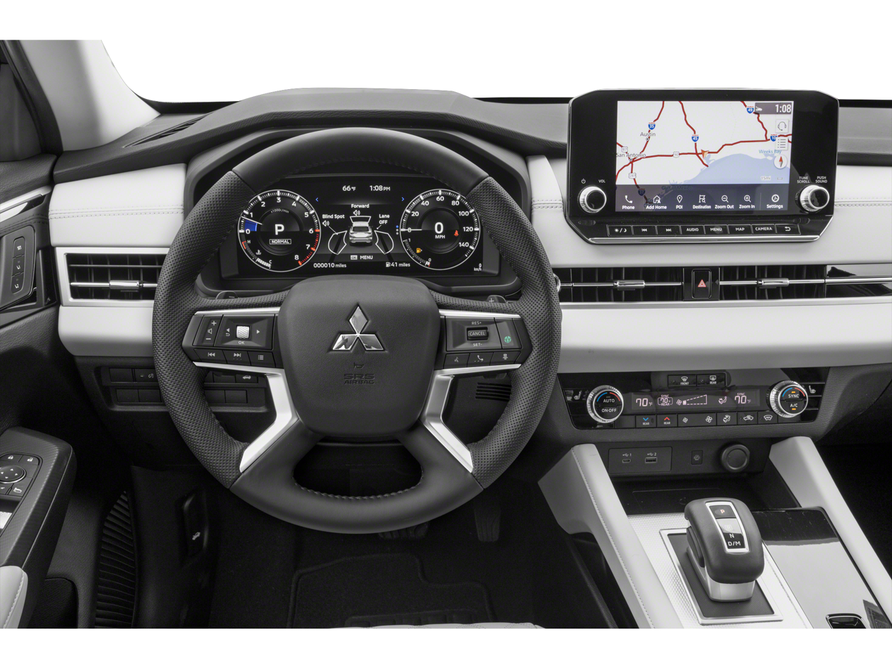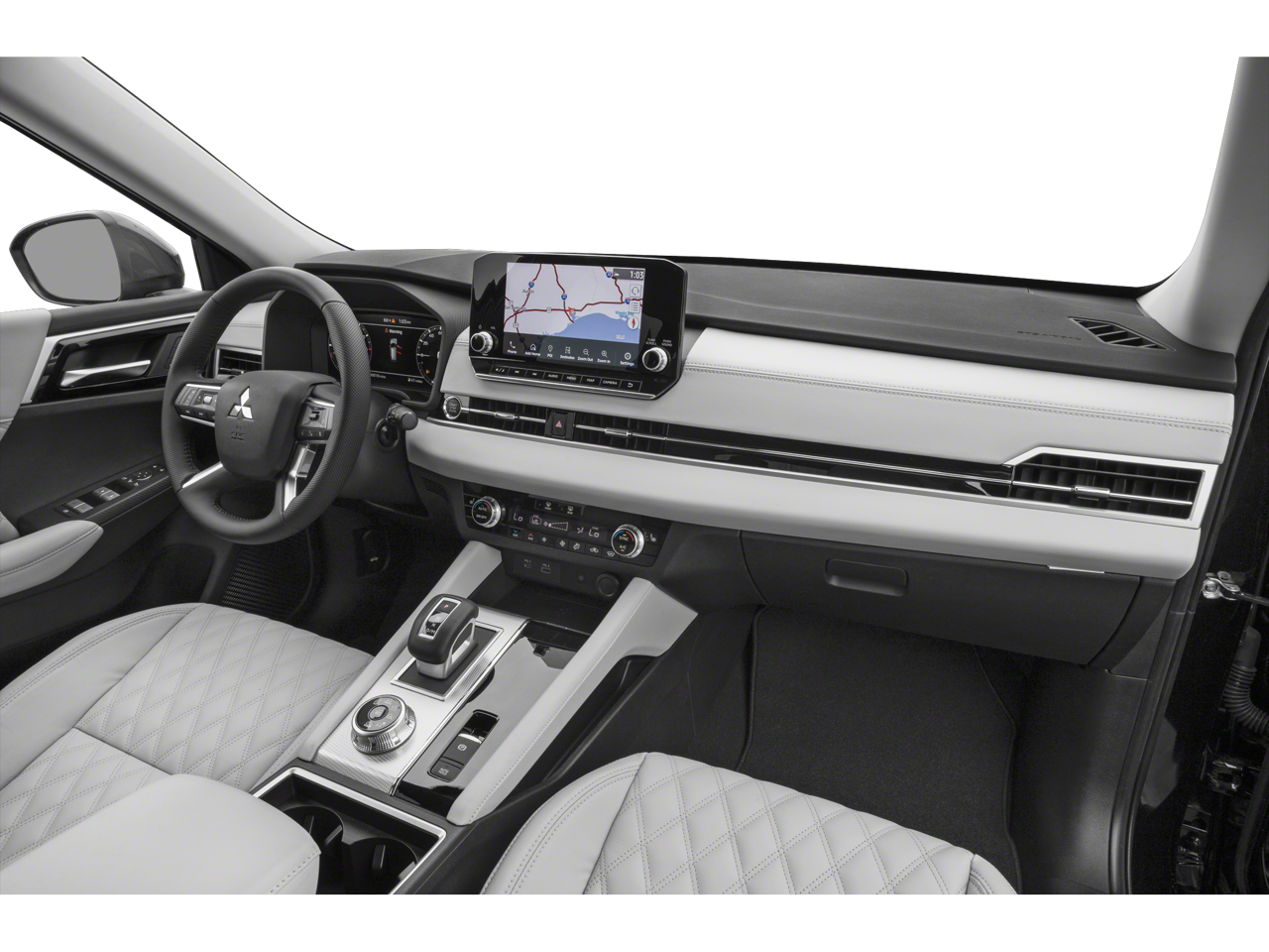 - Radio: AM/FM 9.0" Navigation w/Smartphone Link -inc: 6 speakers, Apple CarPlay, Google Android Auto, SXM all-access and SXM traffic and travel link w/90-day subscription, Mitsubishi Connect, HD Radio, Bluetooth wireless technology, steering wheel controls for phone, audio and voice recognition and USB ports